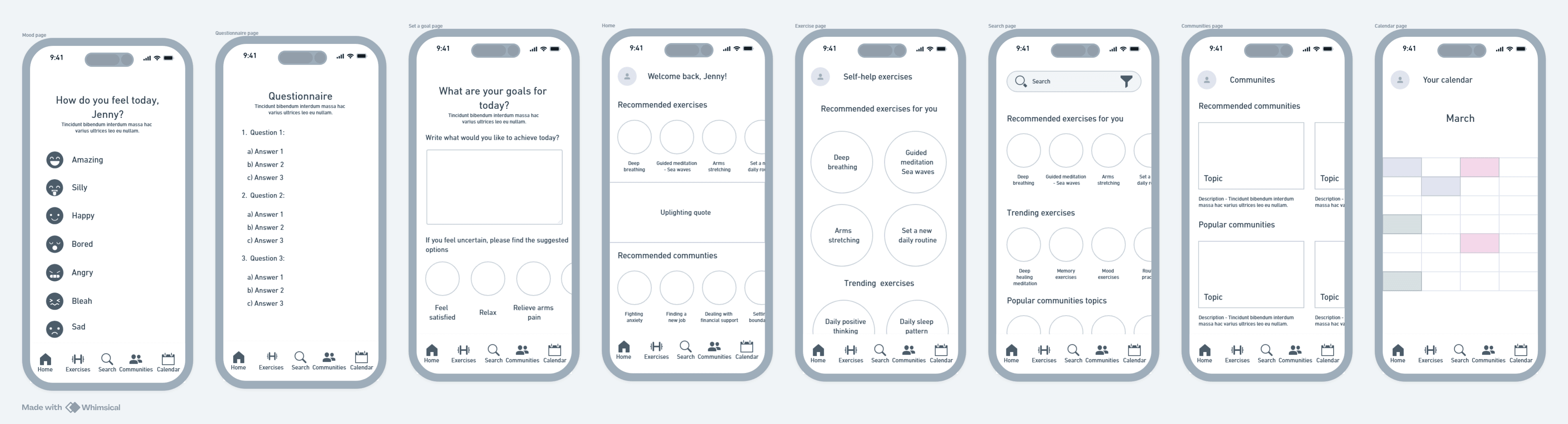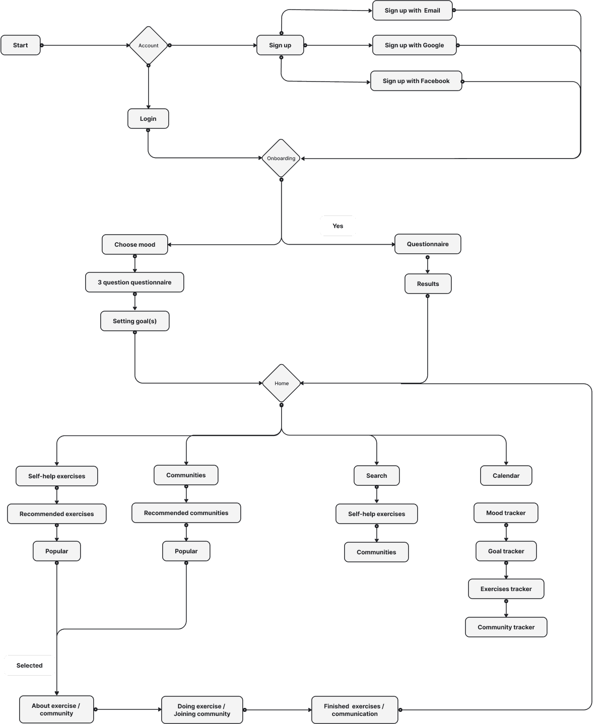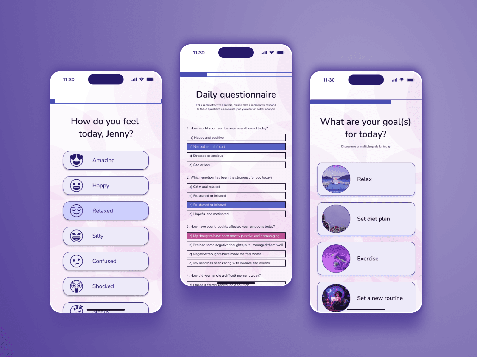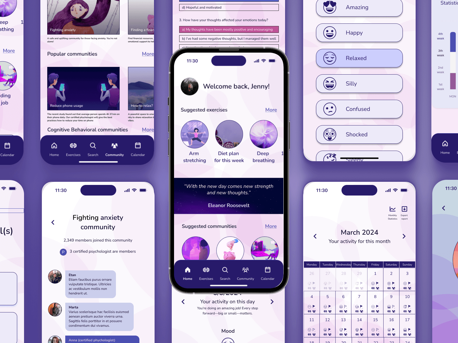 A user-centered mobile app that provides intuitive, AI-powered mood tracking system, guided psychotherapy exercises, and a supportive and professionally supervised peer community. The platform will help users identify emotional trends, access self-help tools based on cognitive behavioral therapy (CBT) and mindfulness, and connect with others for shared experiences and encouragement.
