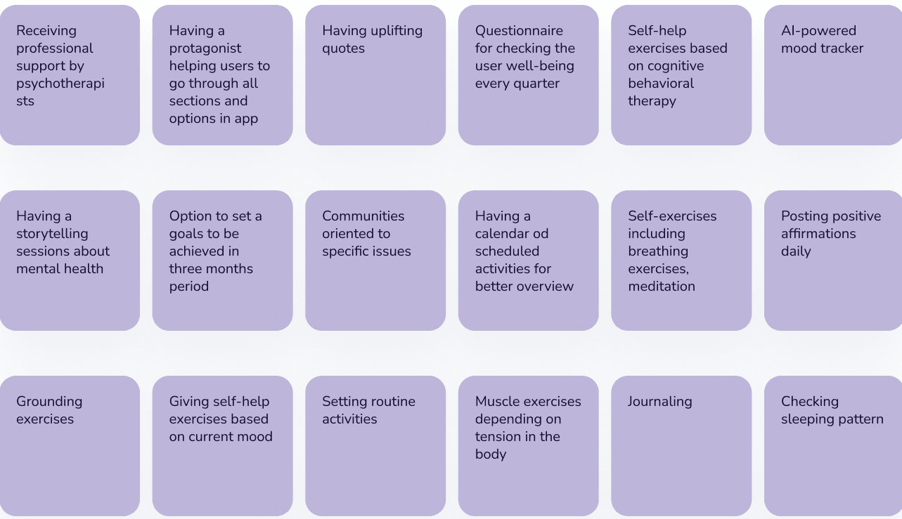 Many individuals are currently experiencing high-stress levels due to recent economic fluctuations, unstable job markets, and difficulties providing for their families. They desire to boost their mental well-being by sharing their concerns and being able to communicate with others without any discomfort. They prefer sharing their feelings in professionally supervised communities with similar issues, checking their daily moods and self-help exercises provided by professionals.